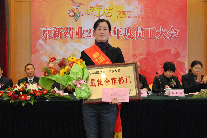 會上,公司總經(jīng)理呂鋼作年度工作報告,報告分兩部分,回顧2010,展望2011年?;仡?010年工作,呂總指出,雖然面對醫(yī)改推進、基藥實施、省級招標(biāo)實行這樣復(fù)雜多變的宏觀環(huán)境,但在公司全體干部員工的努力下,公司生產(chǎn)銷售穩(wěn)步發(fā)展,研發(fā)工作扎實推進,管理工作成績顯著,企業(yè)文化建設(shè)工作對提高凝聚力、增強團隊合作意識起到了積極的促進作用,各項年度目標(biāo)任務(wù)完成較好。呂總在肯定成績的同時,也客觀指出了2010年工作中存在的不足,希望全體干部員工在今后的工作中努力加以克服,以推進企業(yè)的快速發(fā)展。展望2011,呂總根據(jù)公司的總體目標(biāo),向各分子公司提出了新的目標(biāo)。講話中,呂總強調(diào)指出,京新藥業(yè)的每一名干部員工都要承擔(dān)起自己的責(zé)任,立足本職,力求發(fā)展,團結(jié)一致,求真務(wù)實,搶抓新機遇,增創(chuàng)新優(yōu)勢,再創(chuàng)新輝煌!