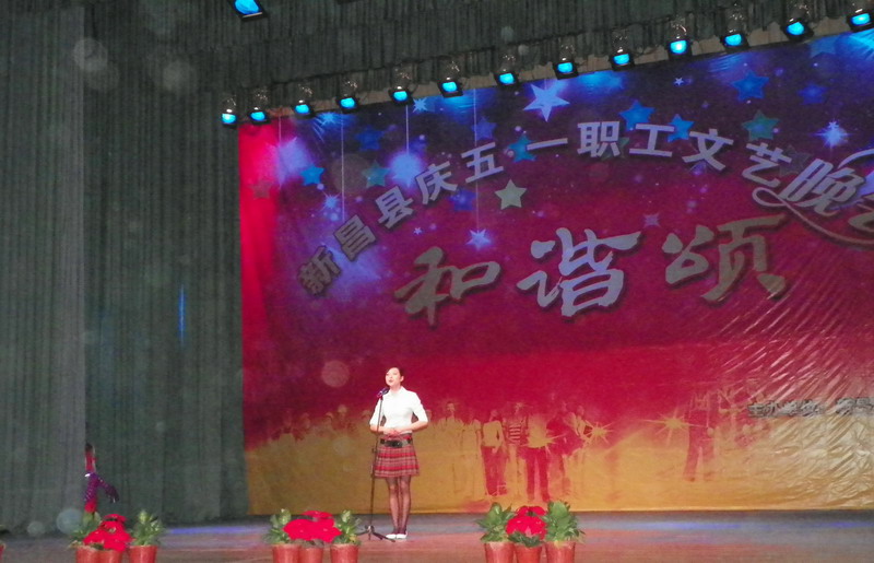 4月28日晚7點,由縣總工會舉辦的新昌縣“和諧頌”慶五一職工文藝晚會暨表彰大會在縣文化中心隆重舉行??h領(lǐng)導潘岳夢、嚴鋼出席晚會,包括我公司在內(nèi)的縣內(nèi)十多個大型企業(yè)參加了文藝演出,精彩的演出為勞動者的節(jié)日帶來了歡樂。我公司選送的節(jié)目詩朗誦《走進京新》,由研究一所王艷麗表演,她以新進職工的角度抒發(fā)了對公司的熱愛之情。